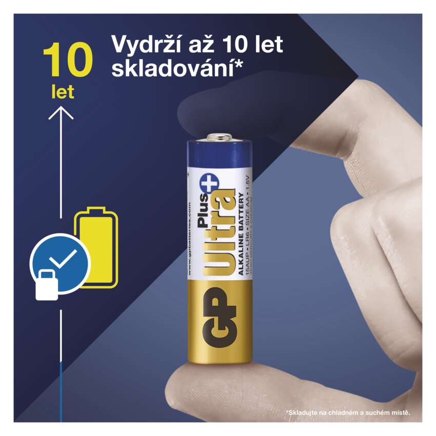 Alkalické baterie GP Ultra+ představují opravdu silný hnací motor pro vaši elektroniku, protože mají až o 60 % více energie než obyčejné alkalické baterie. Udrží při životě i ta energeticky nejnáročnější zařízení – svítilny, dětské hračky, rádia – a mnohem déle, než jste zvyklí.