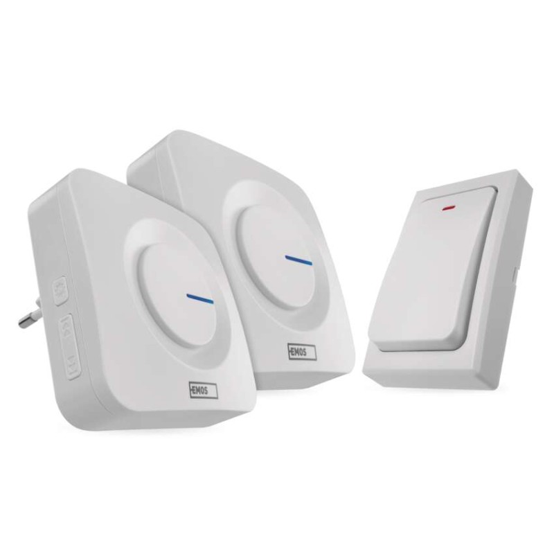 Moderní domovní zvonek EMOS v elegantní bílé barvě má zaoblené tvary a na svět svítí dvěma LED diodami, které signalizují jeho bezchybnou funkci. Dioda na tlačítku má barvu červenou, dioda na zvonku pak modrou. Mezi sebou pak obě části soupravy komunikují prostřednictvím rádiových vln o frekvenci 433,92 MHz.