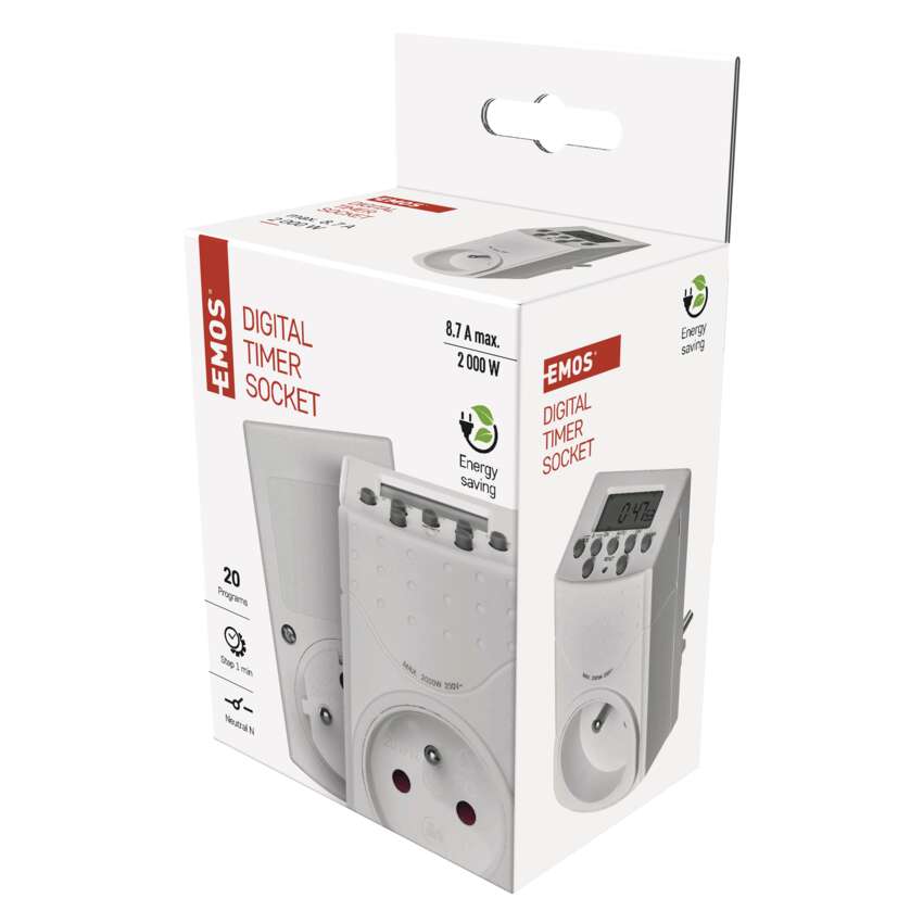 LCD displej ukazuje stav nastavení programu a reálný čas. Maximální počet programů pro vypnutí/zapnutí je 140 za týden.Tato digitální spínací zásuvka, nebo-li časovač, je ideální pro nastavení zapnutí a vypnutí jakýchkoliv elektrických spotřebičů. Je spolehlivý i ve Vaší nepřítomnosti.