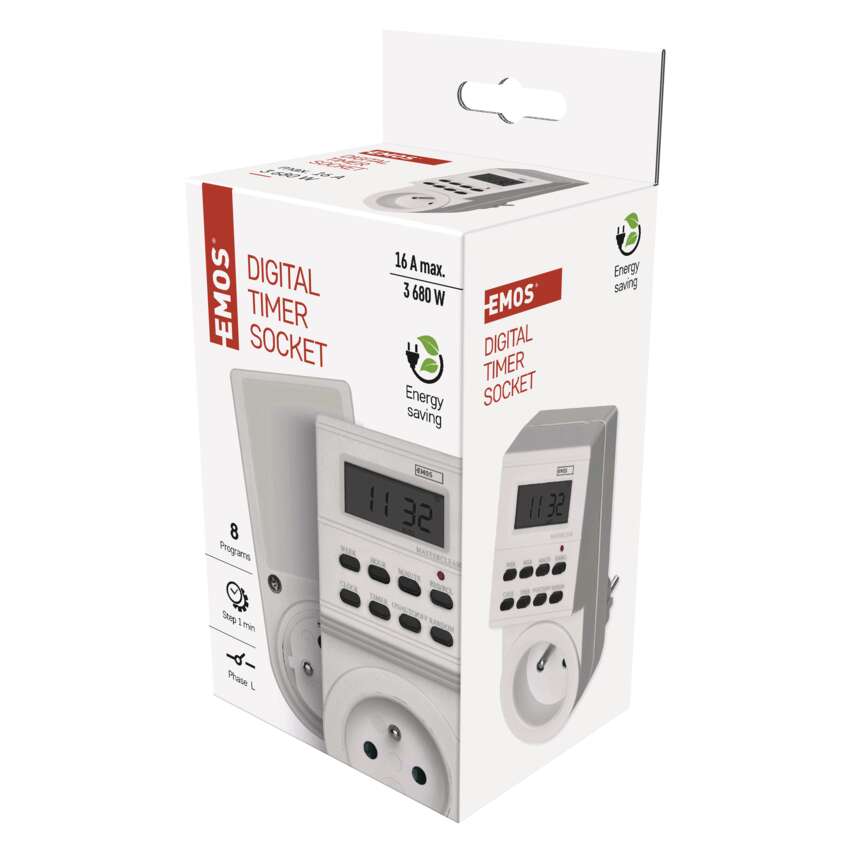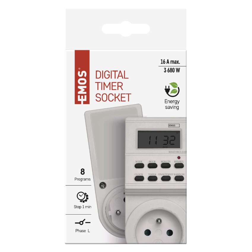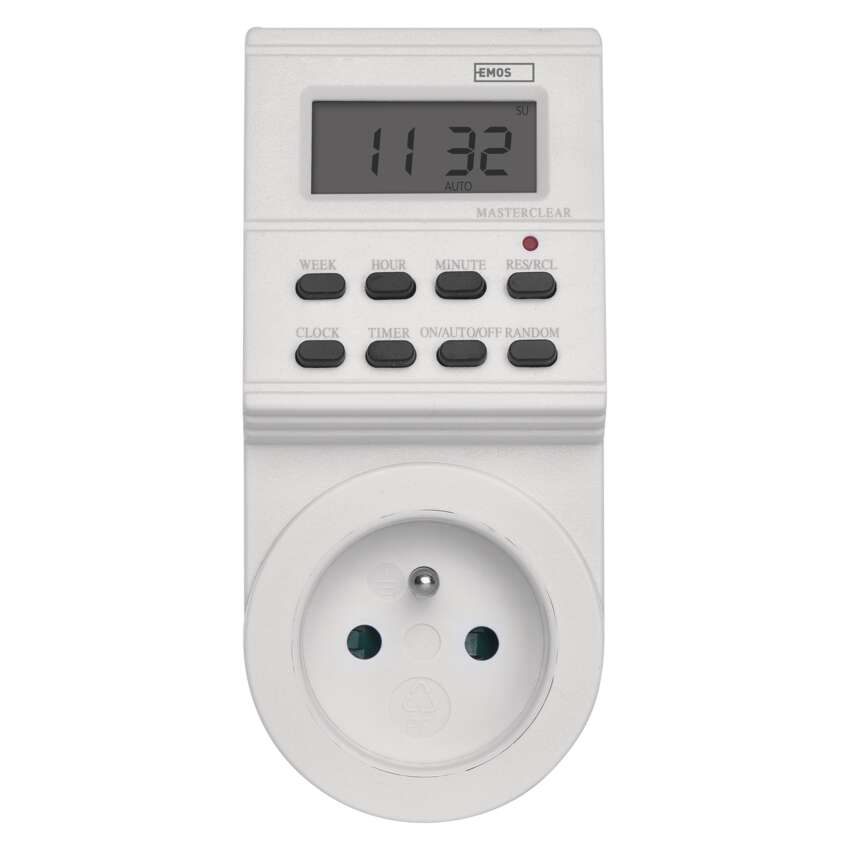 Tato digitální spínací zásuvka, nebo-li časovač, je ideální pro nastavení zapnutí a vypnutí jakýchkoliv elektrických spotřebičů. Je spolehlivý i ve Vaší nepřítomnosti.