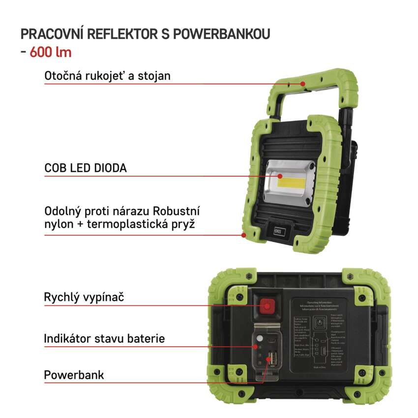 COB LED nabíjecí pracovní reflektor P4534, 600 lm, 3000 mAh