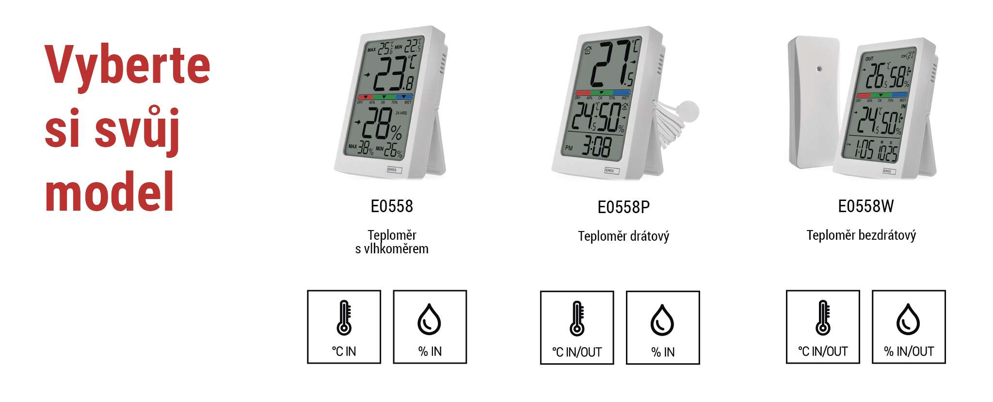 Teploměr také zaznamenává nejnižší a nejvyšší naměřené hodnoty a ukládá je pro pozdější kontrolu. Můžete si zvolit, zda chcete max. a min. hodnoty teploty a vlhkosti sledovat za posledních 24 hodin nebo od začátku měření. Jednoduché ovládání, ale spousta informací – to je náš bezdrátový teploměr s vlhkoměrem E0558.