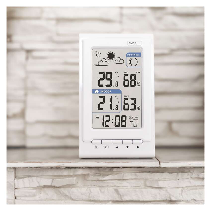 Díky ukazateli trendu vnitřní a venkovní teploty a předpovědi počasí můžete lépe plánovat vaše venkovní aktivity, aniž by vám je překazil nečekaný déšť či bouřka. Stanice vám předpoví počasí na následujících 12 až 24 hodin pro okolí až do 20 kilometrů. Na displeji zařízení také zjistíte, jaká je momentální fáze měsíce.