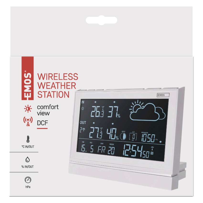 Meteostanice s kvalitním podsvíceným VA displejem, která je vybavena celou řadou praktických funkcí. Přesně to je bezdrátová meteostanice EMOS, se kterou budete mít dokonalý přehled o počasí. Kromě aktuální vnitřní a venkovní teploty se můžete spolehnout na ukazatel vnitřní a venkovní vlhkosti, záznam maximální a minimální teploty, předpověď počasí a také zobrazení času, data a kalendáře.