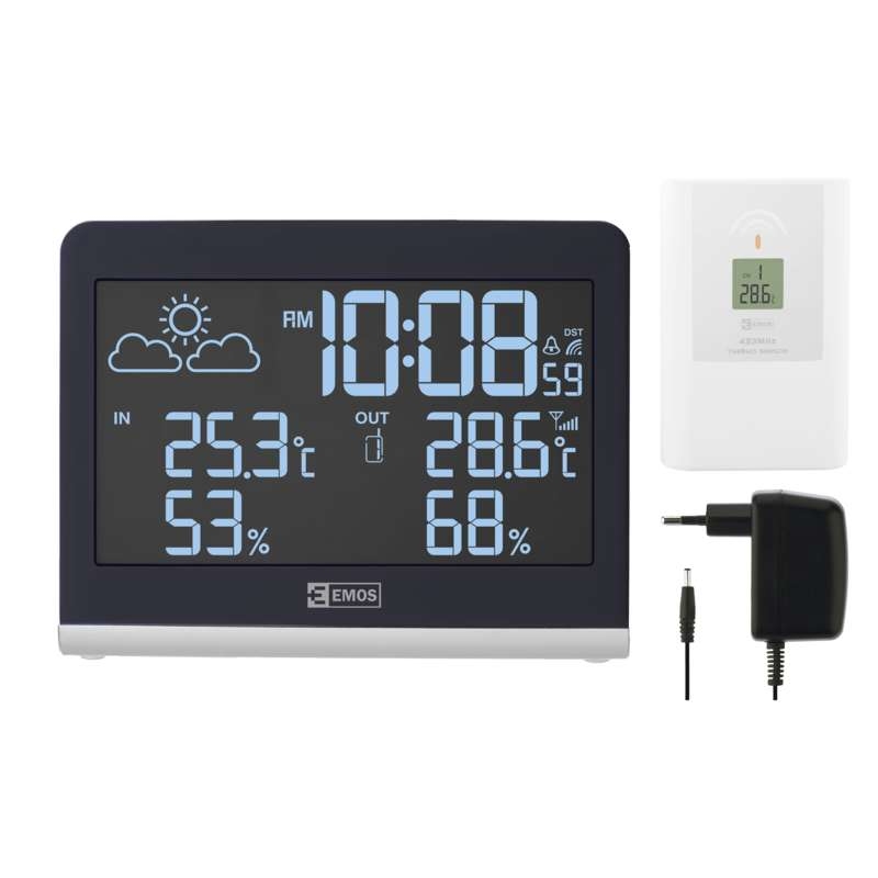 Chcete mít přehled o tom, jaké počasí bude v rámci několika následujících hodin? Denní aktivity vám pomůže naplánovat bezdrátová meteostanice EMOS, díky které budete vždy vědět, jestli bude svítit slunce nebo bude pršet. Poskytne vám také cenné informace o vnitřní a venkovní teplotě a vlhkosti a na přehledném VA displeji zobrazí maximální a minimální teplotu a aktuální čas.