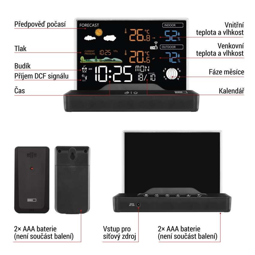| napájení stanice | 2× 1,5 V AAA (nejsou součástí balení) |