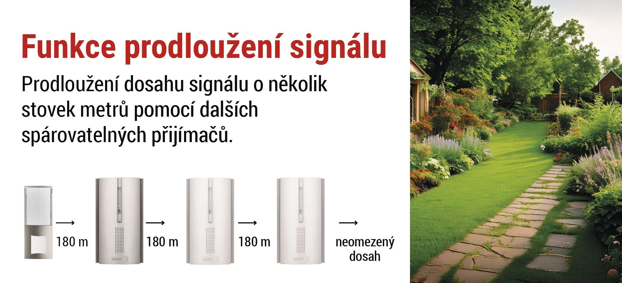 Zapomeňte na klasické zvonky s omezeným dosahem. Díky chytré technologii repeateru se každý další přijímač P5763RN stává posilovačem signálu. Můžete tak libovolně prodlužovat pokrytí, přidávat další zvonky do různých částí vašeho domu nebo zahrady a vytvořit si zvukově propojený prostor bez omezení.