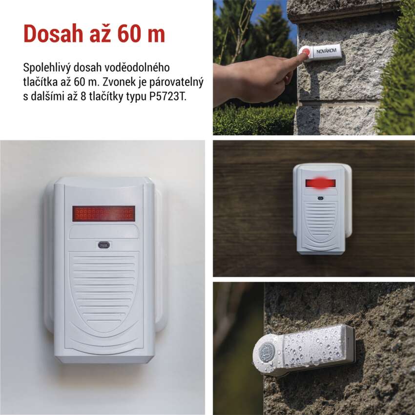 Odolné bezdrátové tlačítko si poradí i s deštěm nebo sněhem. Funguje spolehlivě v exteriéru a dává vám naprostou svobodu při umístění.