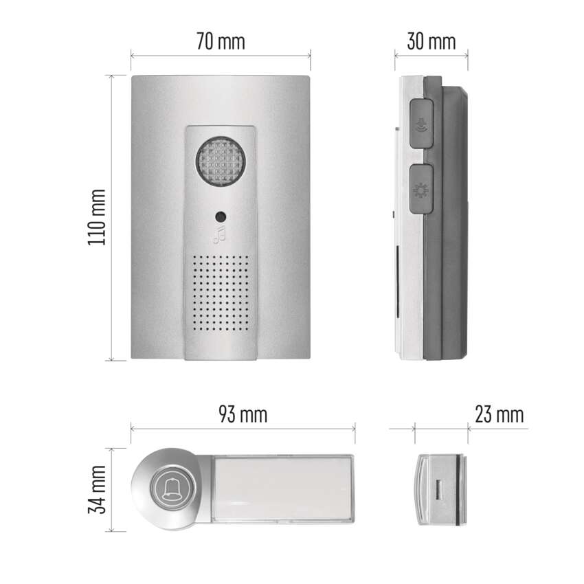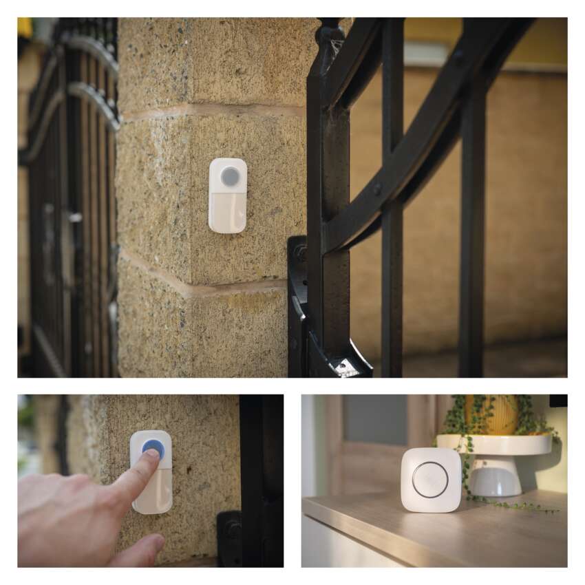 Zapomeňte na kabely a kompromisy. Napájení běžně dostupnými bateriemi (3× 1,5 V AA pro napájení hlavní jednotky zvonku a 1× 3 V CR2032 pro napájení tlačítka zvonku) a robustní bezdrátové spojení dovolí umístit tlačítko až 100 m od přijímače - k brance, na plot i na chalupu.