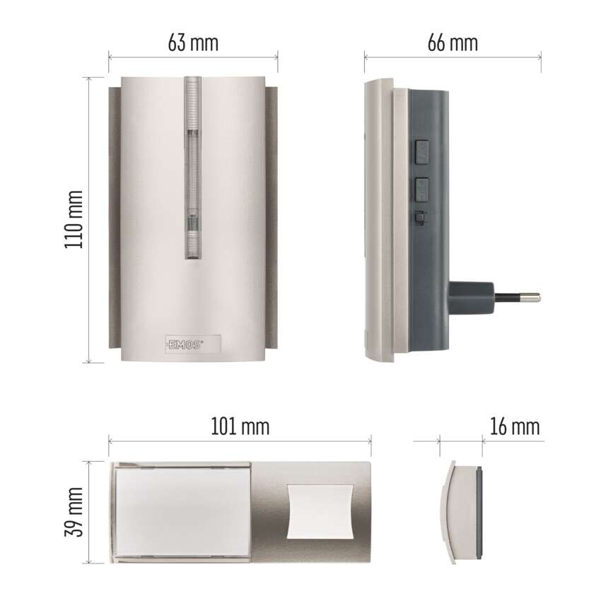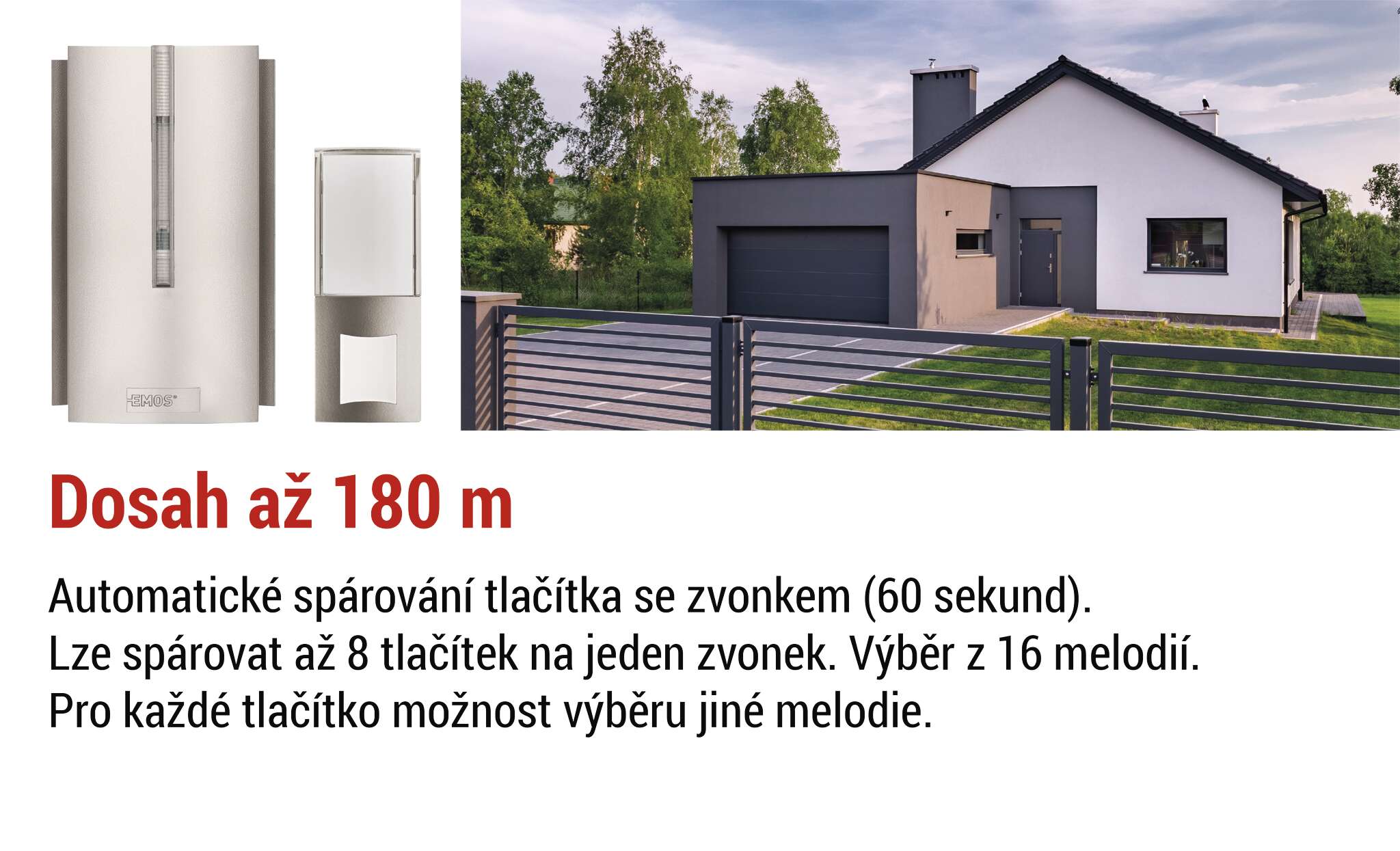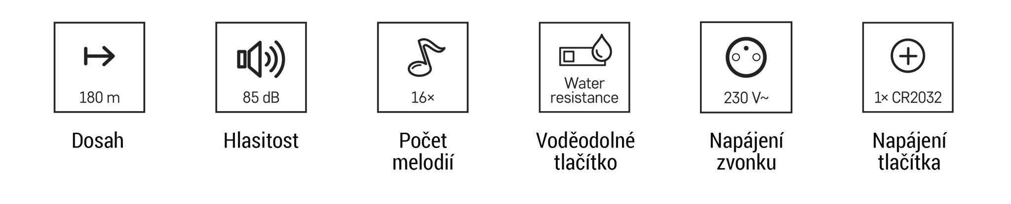 Zvonkové tlačítko je napájeno baterií a má voděodolnost IP44, takže si poradí i s nepříznivým počasím. Bezdrátový přesnost na frekvenci 433 MHz zajistí stabilní spojení až na 180 metrů, bez nutnosti tahat kabely.