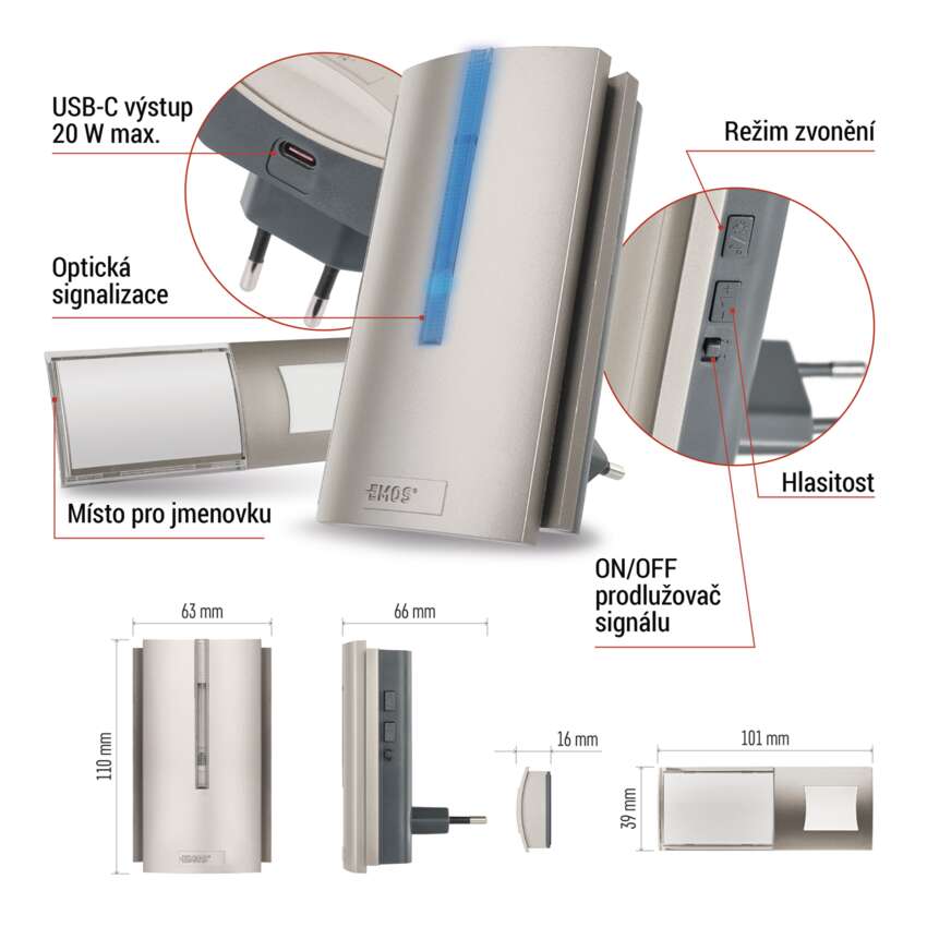 Tento elegantní zvonek přináší nejen spolehlivé doručení každého zazvonění, ale také chytré řešení pro napájení vašich zařízení. Díky USB-C PD výstupu s výkonem až 20 W zvládne rychle a bezpečně nabíjet mobilní telefon, tablet či jiná drobná elektronická zařízení - a to přímo z vašeho zvonku.