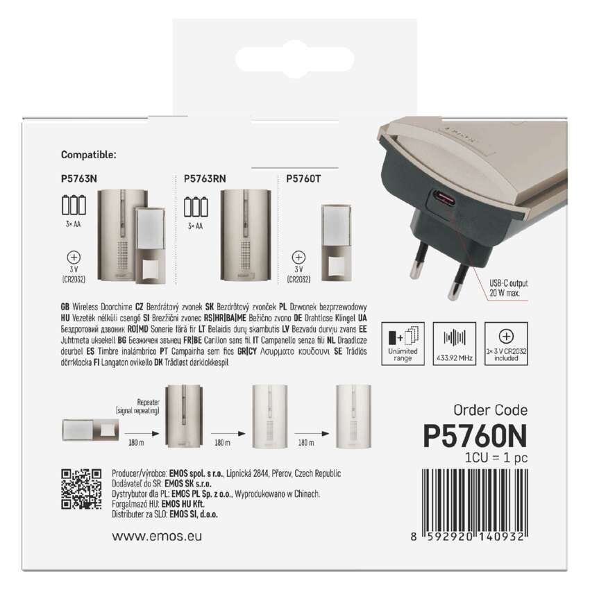 Domovní bezdrátový zvonek P5760N do zásuvky, s možností prodloužení signálu