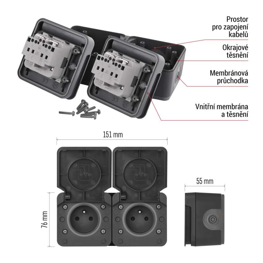 EMOS Cyklone zásuvka dvojnásobná IP55