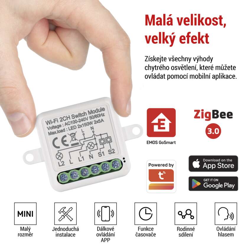 Spínací modul si můžete vybrat pro ovládání jednoho nebo dvou samostatných kanálů. Můžete si tak vybrat vhodný typ podle vypínače, který chcete přeměnit na chytrý (jednovypínač nebo dvouvypínač).