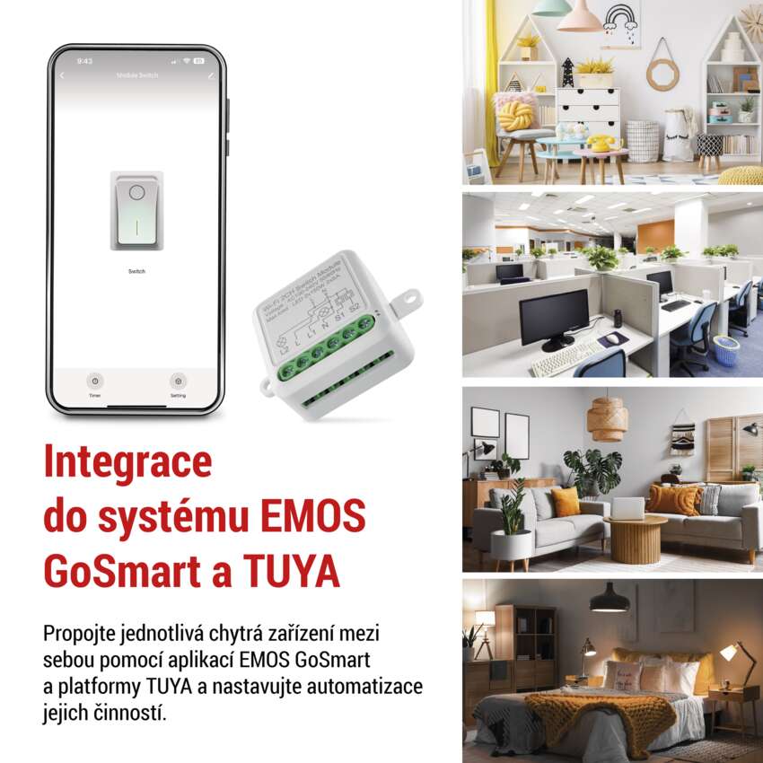 Chytrý modul lze propojit s dalšími zařízeními ve vaší domácnosti (hodiny, světla, čidla dveří, oken, topení). Po spárování s mobilní aplikací EMOS GoSmart můžete automatizovat a plánovat časy pro jednotlivé spotřebiče. Například automatické rozsvícení světel v době vaší dovolené. Vytvořte si chytrou domácnost, která se přizpůsobí vašim potřebám.