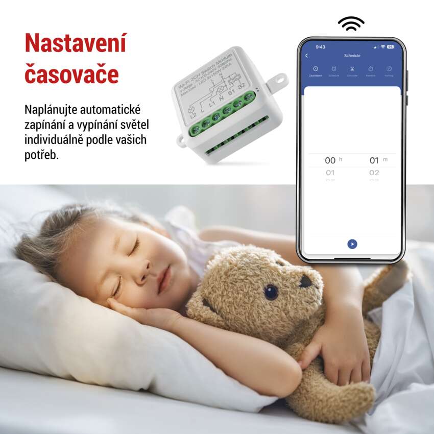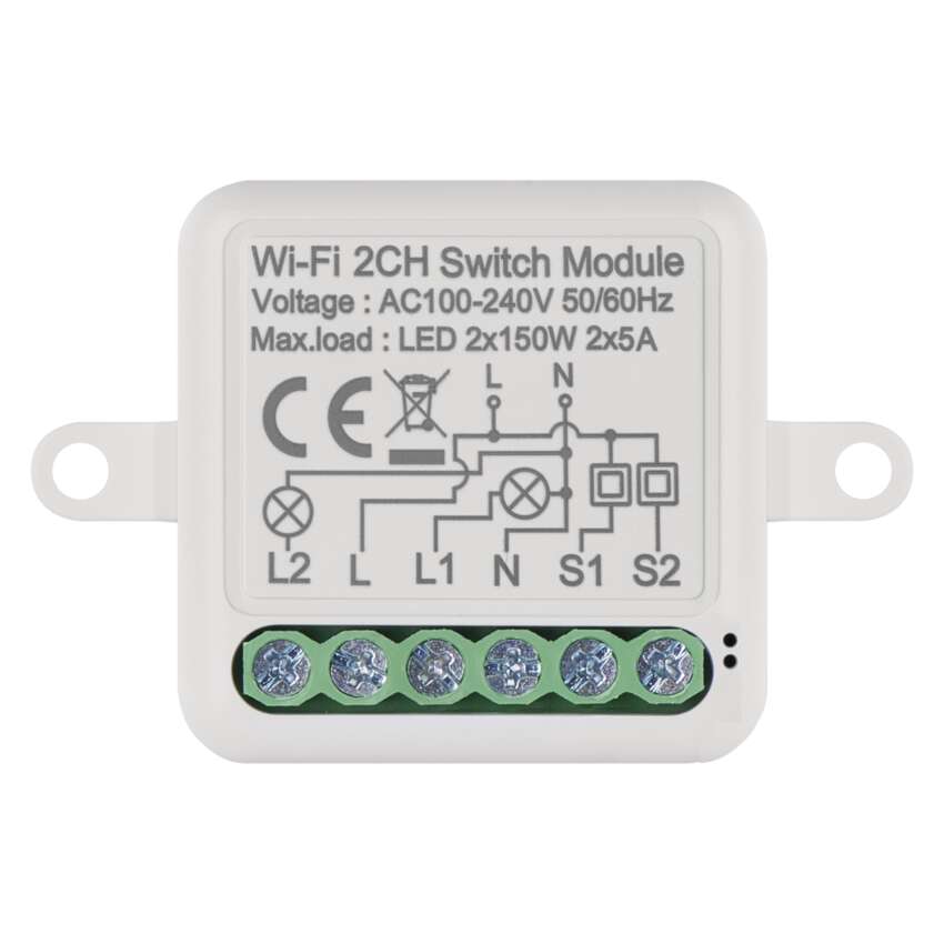 - S 2-kanálovým modulem můžete ovládat dva obvody, např. hlavní světlo v obývacím pokoji a lampu nebo podhledové osvětlení
