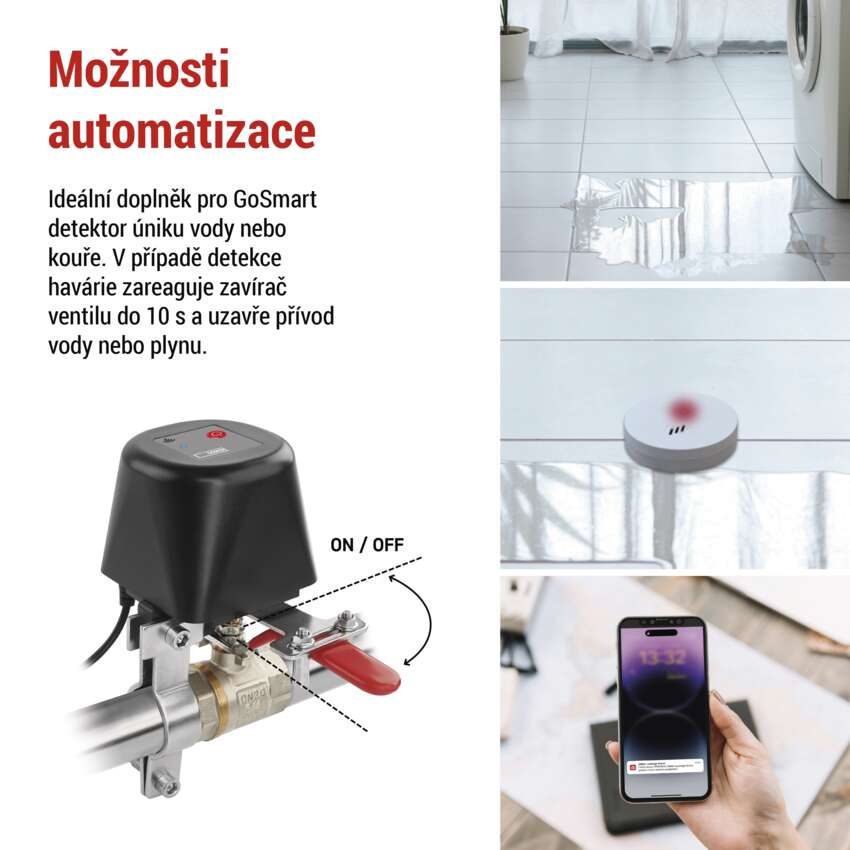Představujeme vám inovativní zařízení, které vám umožní snadno a efektivně ovládat přívod vody nebo plynu prostřednictvím mobilní aplikace EMOS GoSmart. Přívody můžete ovládat vzdáleně pomocí aplikace, hlasových asistentů Google Assistant a Amazon Alexa, anebo to nechat na plné automatizaci s chytrými detektory, kdy uzávěr zareaguje okamžitě při porušení potrubí. Napájení je zajištěno pouze 12V DC, ale i přesto zavírač ventilů disponuje vysokým výkonem a točivým momentem, čímž si poradí i se zatuhlejšími ventily. Ideální volba pro chytré domácnosti, rekreační objekty, ale také pro zavlažování zahrady, dopouštění bazénu atd.