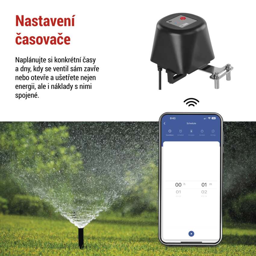 - funkce časovače umožní nastavit časový rozvrh na otevírání/zavírání ventilu