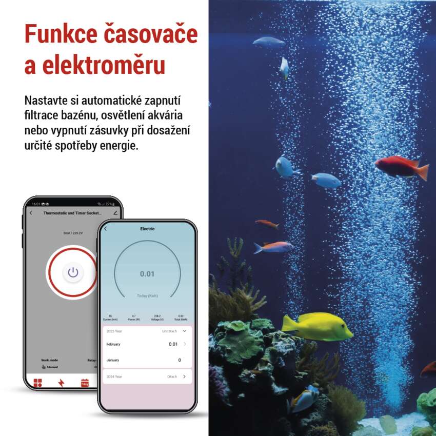 Funkce časovače automatizuje provoz do zásuvky připojených spotřebičů na konkrétní čas a den. Jste mimo svůj domov a chcete, aby se před návratem samy zapnuly? Žádný problém! Funkce odpočtu vám pomůže nastavit automatické zapnutí či vypnutí.