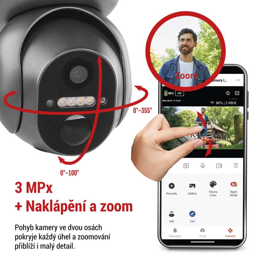 - rozlišení kamery 3MPx pro kvalitní obraz a přiměřenou spotřebu dat
