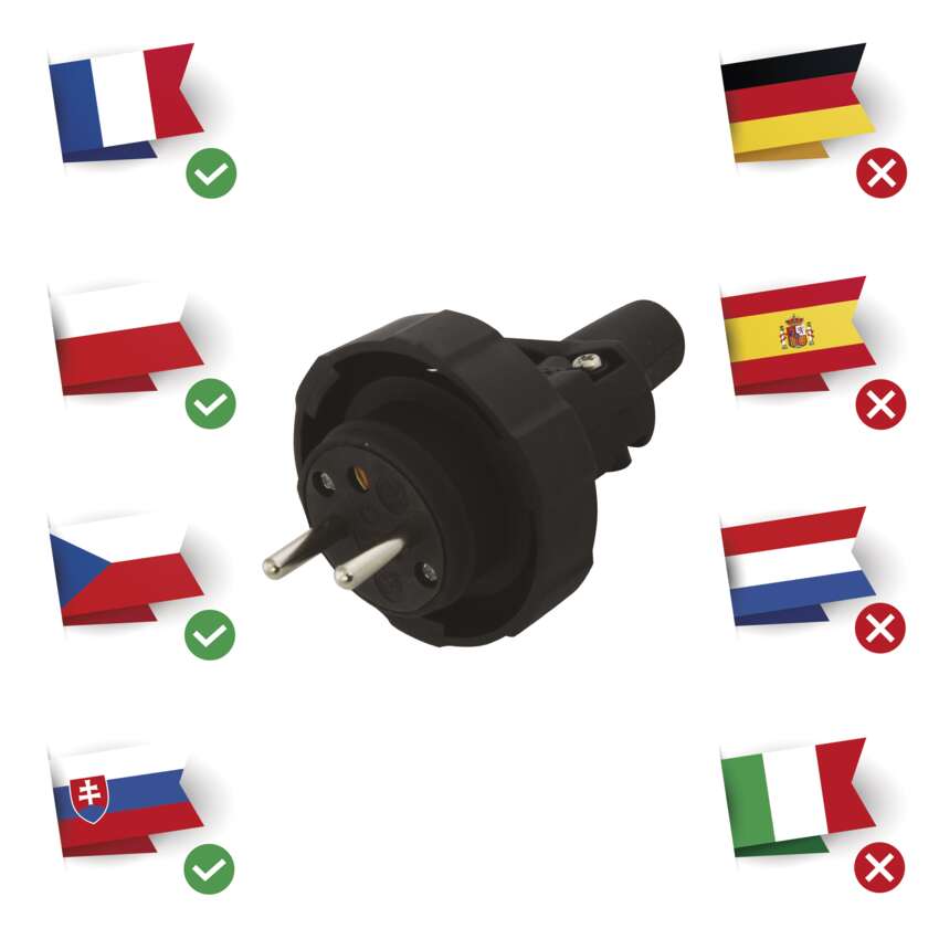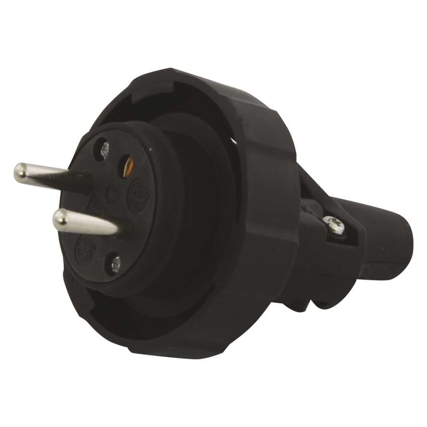 Gumová vidlice pro pohyblivý prodlužovací přívod. Je určena k připojení elektrických zařízení kde je vyžadován vyšší stupeň krytí (i v exteriéru).