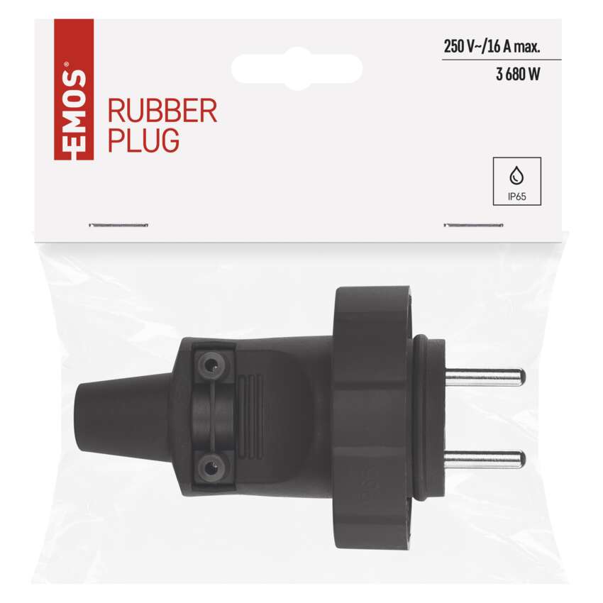 Gumová vidlice pro pohyblivý prodlužovací přívod. Je určena k připojení elektrických zařízení kde je vyžadován vyšší stupeň krytí (i v exteriéru).