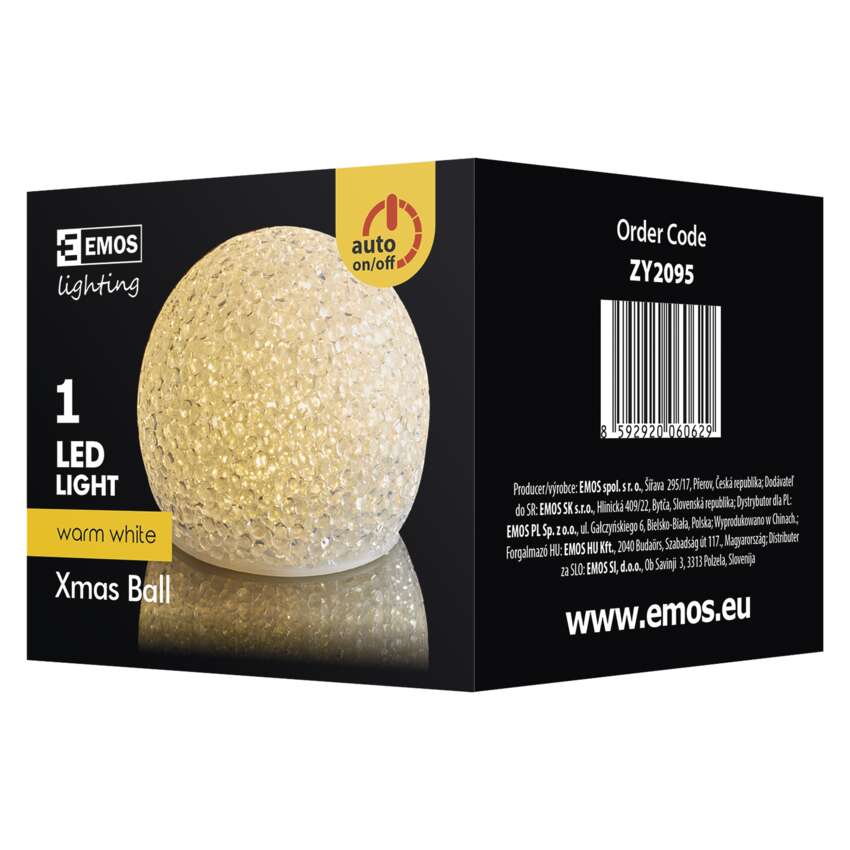 LED dekorace – koule, 8cm, 3x AA, teplá bílá, časovač