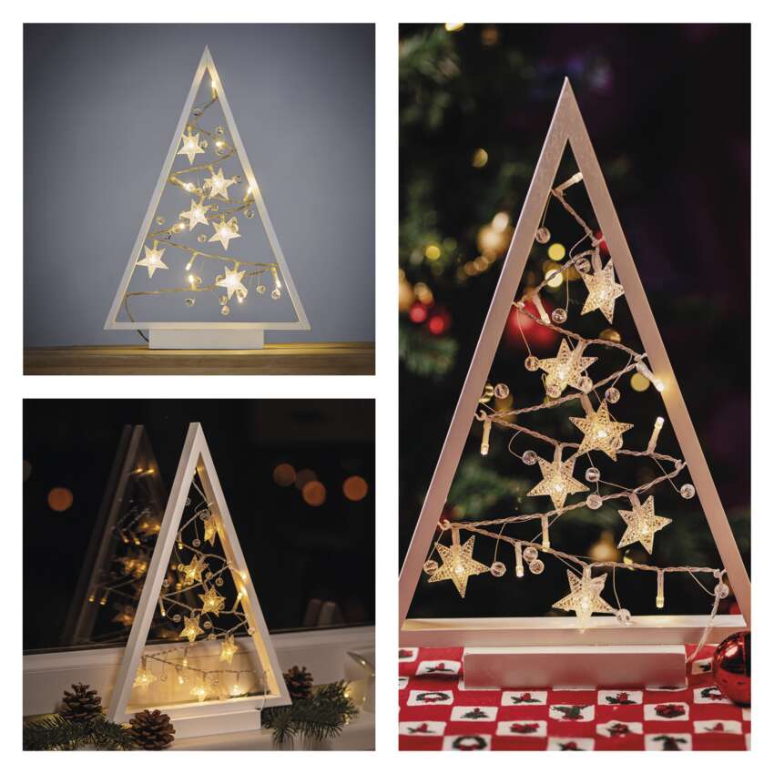 Dřevěné dekorace navozují atmosféru tradičních Vánoc charakteristických vůní perníčků, zvukem vánočních koled a nezaměnitelnou chutí bramborového salátu. Dřevěná dekorace s hvězdami je vybavena příjemným teple bílým osvětlením. Díky napájení pomocí AA baterií ji můžete umístit na libovolné místo ve vašem interiéru a skvěle se bude vyjímat zejména na okenním parapetu, komodě či televizním stolku.