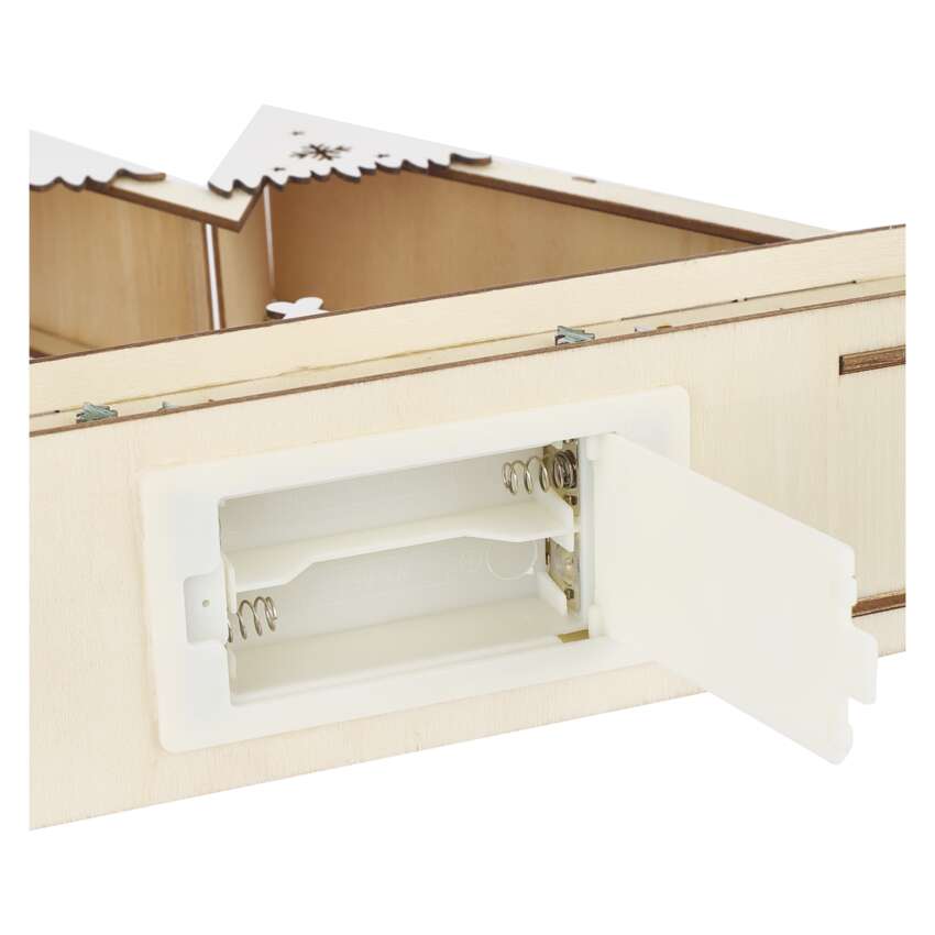 LED dřevěná vánoční krajina, 23,5 cm, 2x AA, vnitřní, teplá bílá, časovač