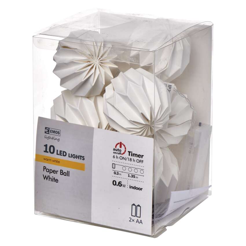 LED girlanda – 10x žluté pap. koule, 2x AA, teplá bílá, čas.