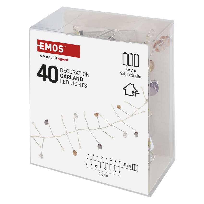 LED girlanda – kamínky, 1,2 m, 3x AA, vnitřní, teplá bílá, časovač
