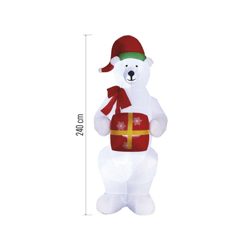 LED lední medvěd s vánočním dárkem, nafukovací, 240 cm, venkovní i vnitřní, studená bílá