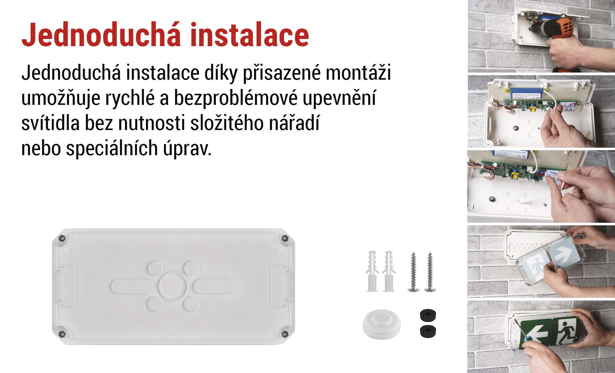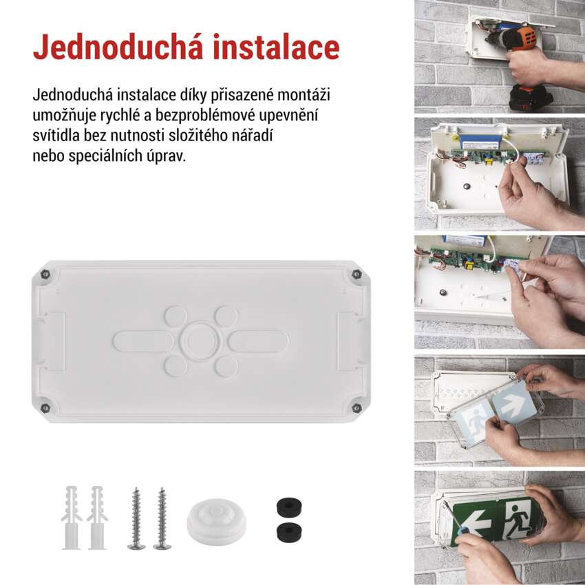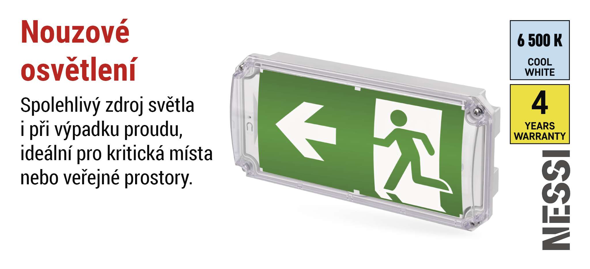 Díky studené bílé barvě světla poskytuje jasné a kontrastní osvětlení, které zajišťuje bezpečnou orientaci a maximální viditelnost na únikových cestách i venku.