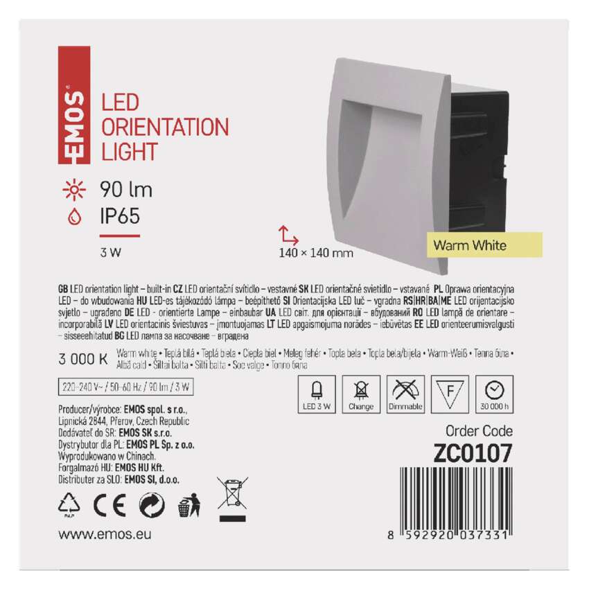 LED orientační vestavné svítidlo 140x140, 3W teplá bílá,IP65