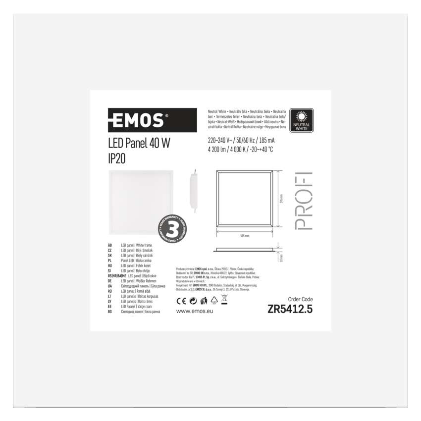 LED panel 60x60, čtvercový vestavný bílý, 40W n.b. MULTIPACK
