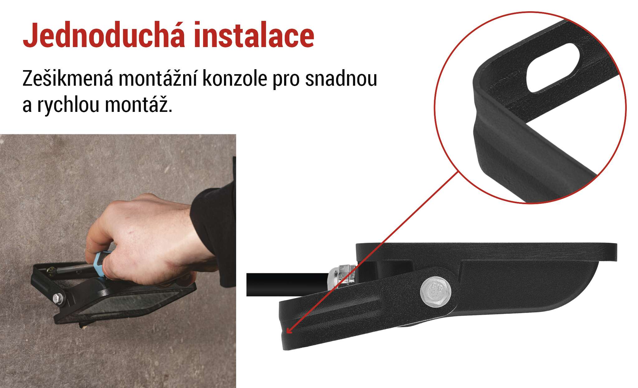 Reflektory GLARO jsou navrženy s praktickou zešikmenou montážní konzolí, která umožňuje rychlou a pohodlnou instalaci na stěnu, fasádu či jiný podklad. Díky možnosti nastavení úhlu osvětlení přesně podle potřeby můžete světlo směrovat tam, kde je nejvíce potřeba, aniž by bylo nutné složité vrtání či úpravy. Jednoduchá montáž šetří čas i námahu a dělá z GLARO ideální volbu pro domácí instalace.