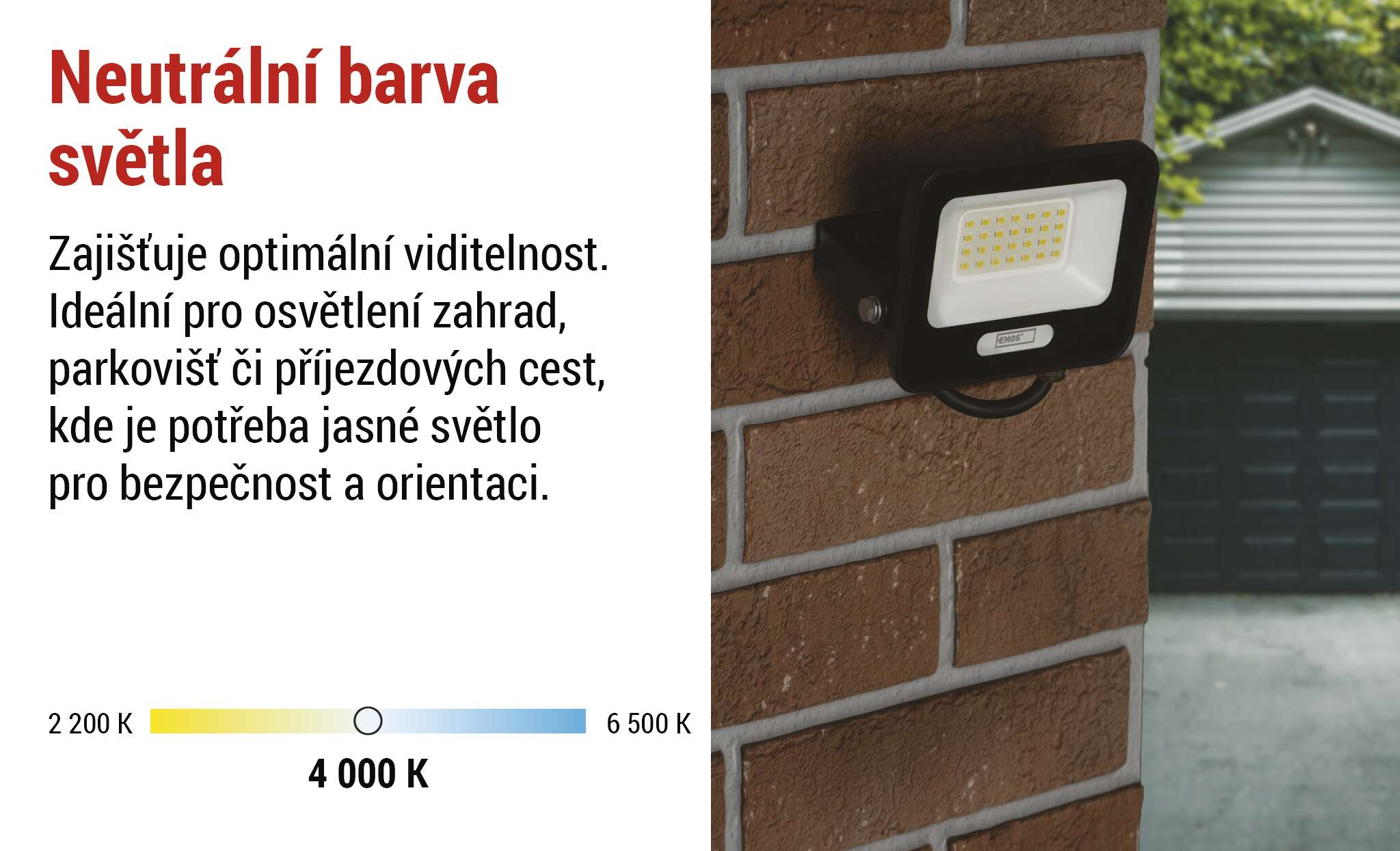 Reflektory GLARO svítí neutrální bílou barvou světla, která nabízí přirozené a komfortní osvětlení bez ostrých modrých tónů ani žlutého nádechu. Zajišťuje optimální viditelnost a věrné podání barev. Díky tomu se prostor osvětluje rovnoměrně, světlo je příjemné pro oči a vytváří bezpečné prostředí pro pohyb i práci.