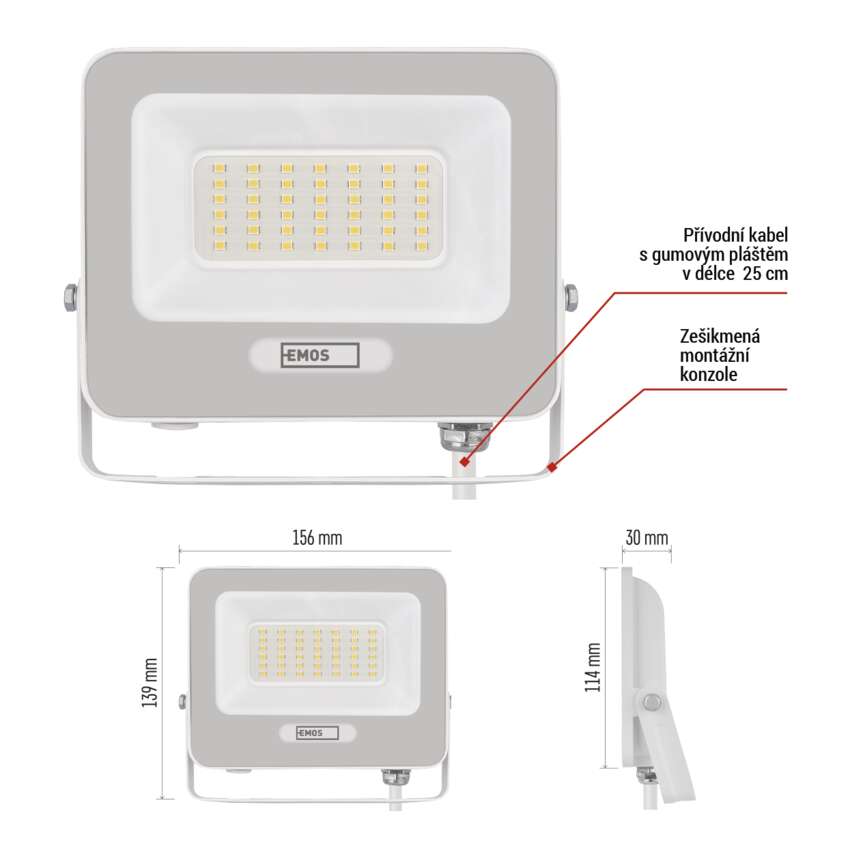 LED reflektor GLARO 30W, bílý, IP65, 3000 lm, neutrální bílá