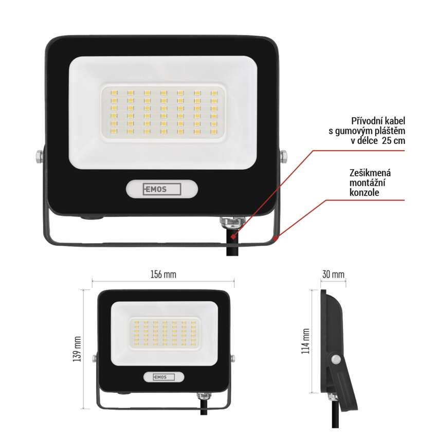 LED reflektor GLARO 30W, černý, IP65, 3000 lm, neutrální bílá