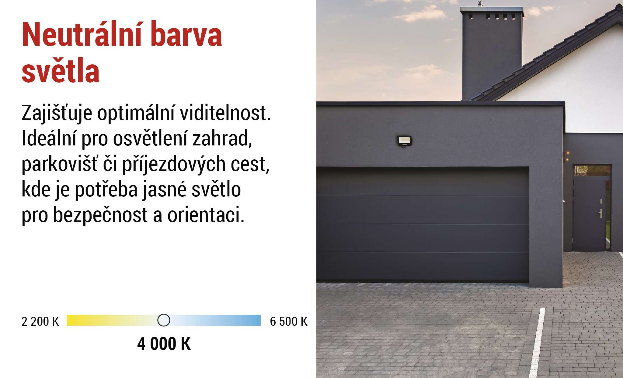Reflektory GLARO svítí neutrální bílou barvou světla, která nabízí přirozené a komfortní osvětlení bez ostrých modrých tónů ani žlutého nádechu. Zajišťuje optimální viditelnost a věrné podání barev. Díky tomu se prostor osvětluje rovnoměrně, světlo je příjemné pro oči a vytváří bezpečné prostředí pro pohyb i práci.
