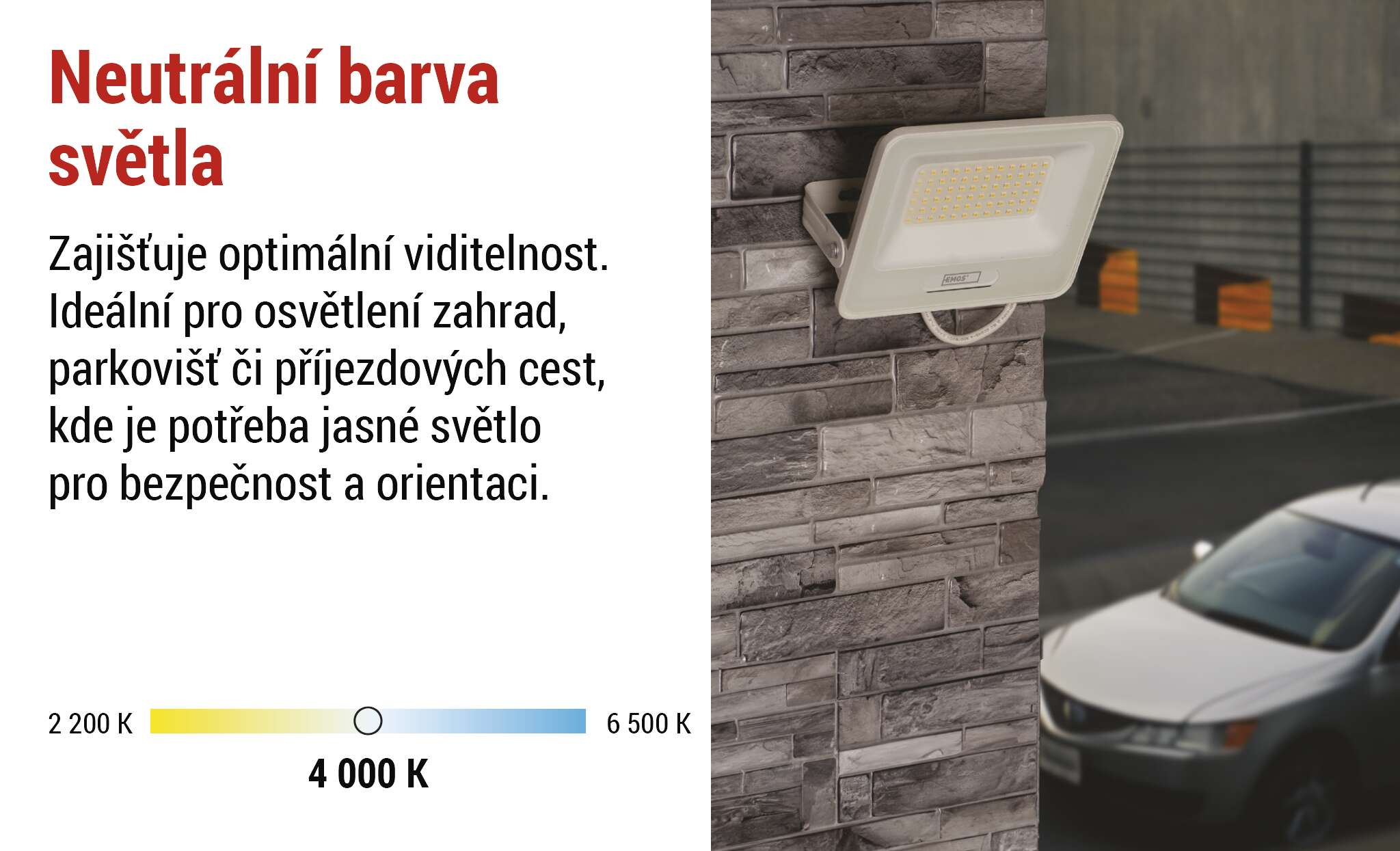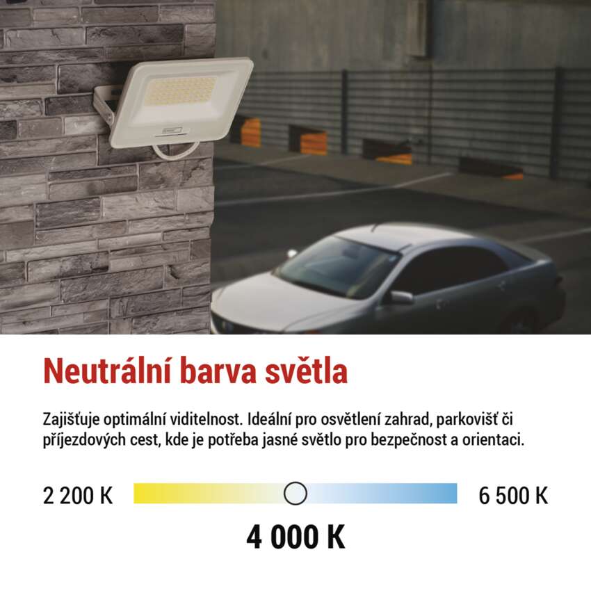Reflektory GLARO svítí neutrální bílou barvou světla, která nabízí přirozené a komfortní osvětlení bez ostrých modrých tónů ani žlutého nádechu. Zajišťuje optimální viditelnost a věrné podání barev. Díky tomu se prostor osvětluje rovnoměrně, světlo je příjemné pro oči a vytváří bezpečné prostředí pro pohyb i práci.
