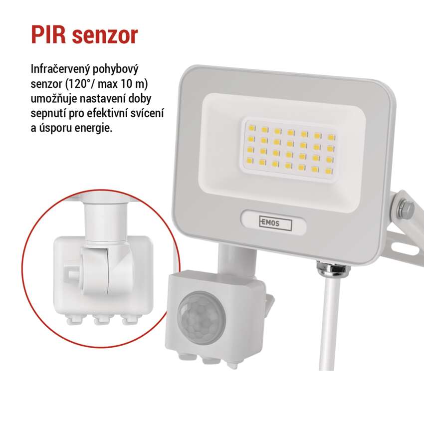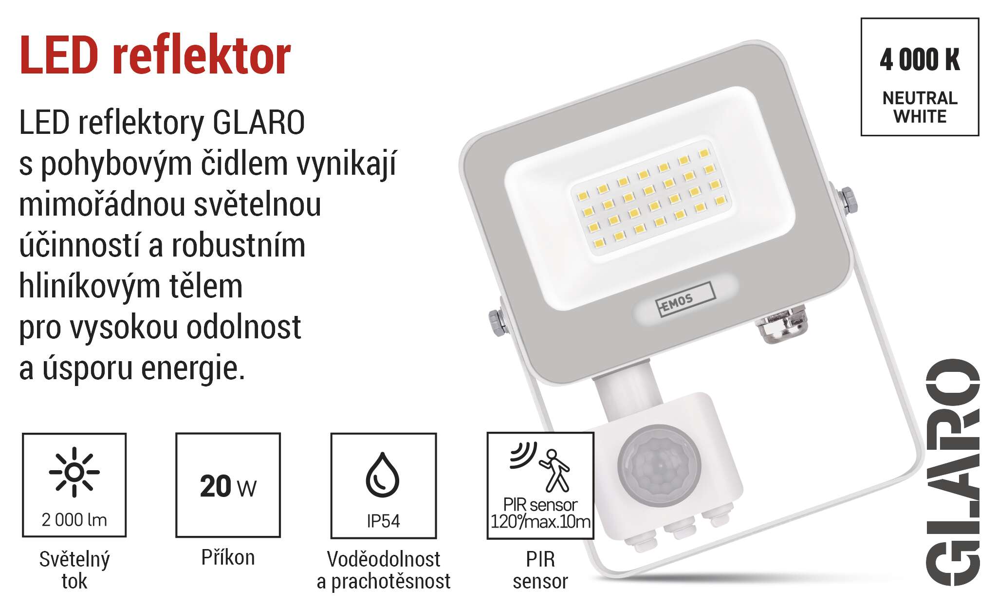 LED reflektor GLARO s pohybovým čidlem, 20 W, bílý, IP54, 2000 lm, neutrální bílá