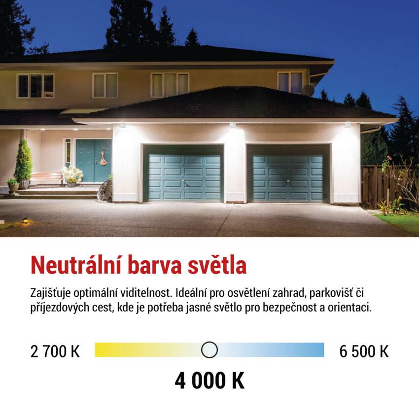 - Neutrální bílé světlo se přibližuje přirozenému dennímu světlu