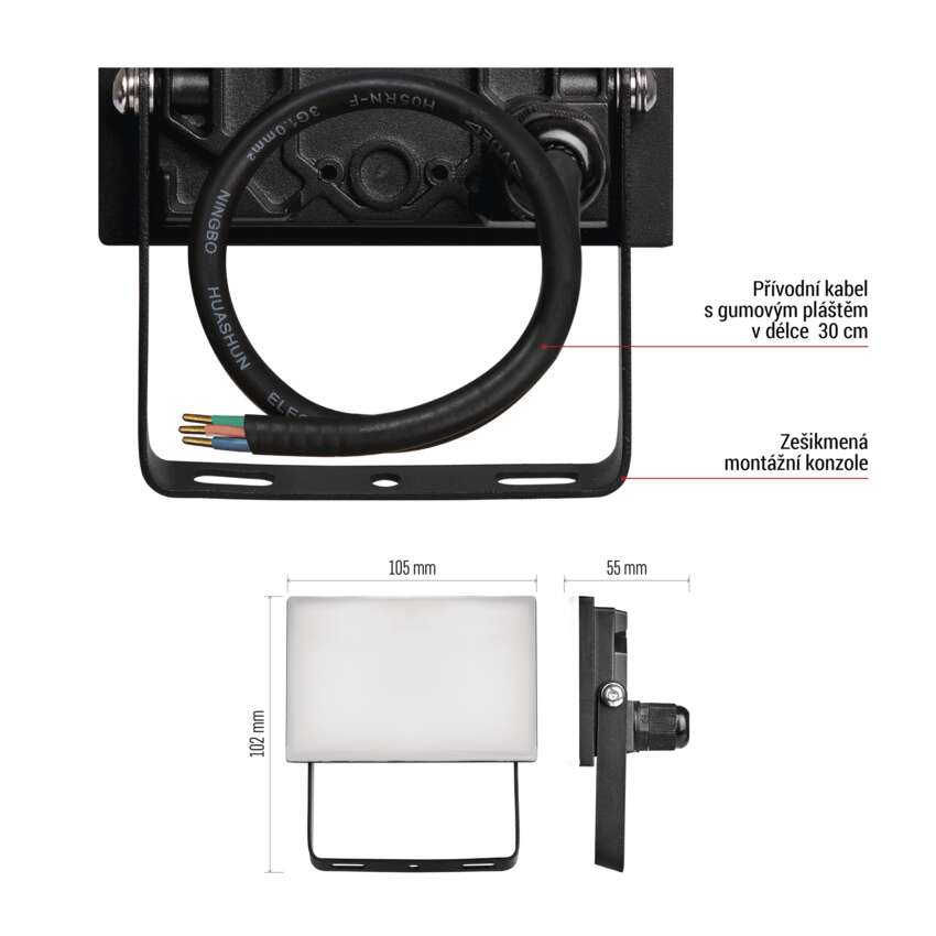 LED reflektor TAMBO, 10 W, 1000 lm, IP65, černý
