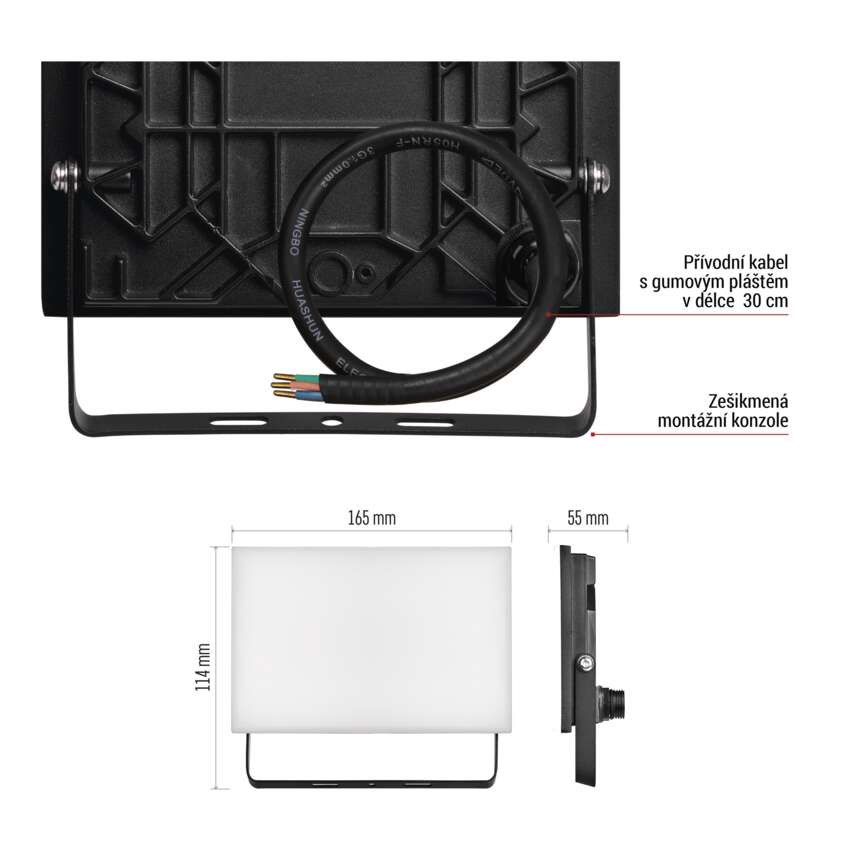 LED reflektor TAMBO, 30 W, 3000 lm, IP65, černý