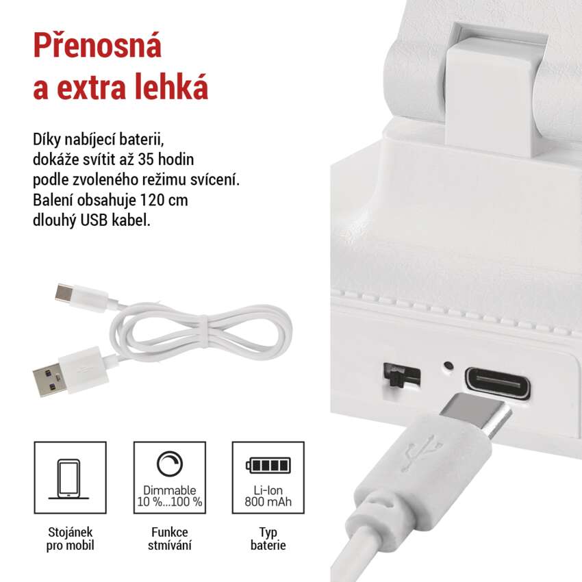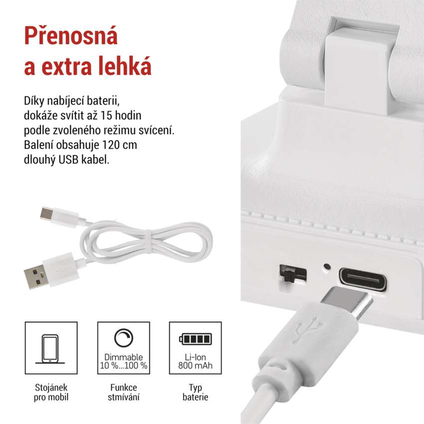 Objevte dokonalou kombinaci elegance a funkcionality s naší stolní lampou AMY. Nabízí nejen stylový bílý design s imitací kůže, ale také řadu praktických funkcí, které z ní činí ideální doplněk pro váš pracovní stůl nebo noční stolek.