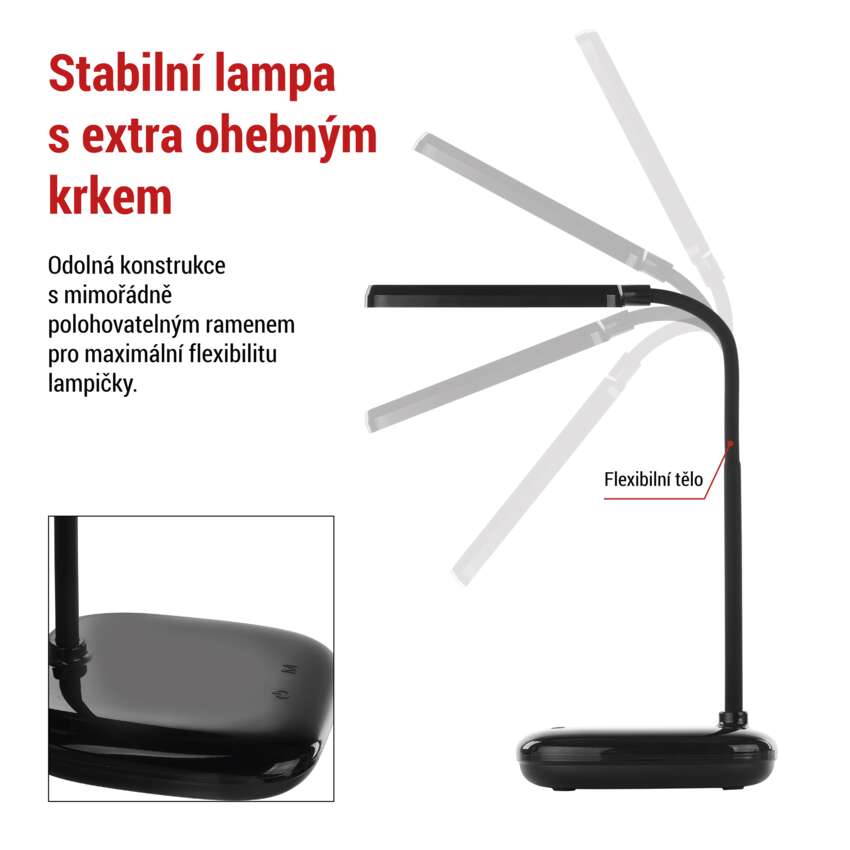 Lampička nabízí možnost plynulého stmívání. Díky tomu si můžete nastavit ideální intenzitu světla podle vašich potřeb. Polohovatelné rameno lampičky vám umožní nasměrovat světlo přesně tam, kde ho potřebujete. Lampička je dostupná ve dvou barevných provedeních – bílé a černé. Každý si tedy vybere tu variantu, která nejlépe ladí s jeho stylem. Pro vaši bezpečnost má lampička zaoblené hrany, které minimalizují riziko zranění.