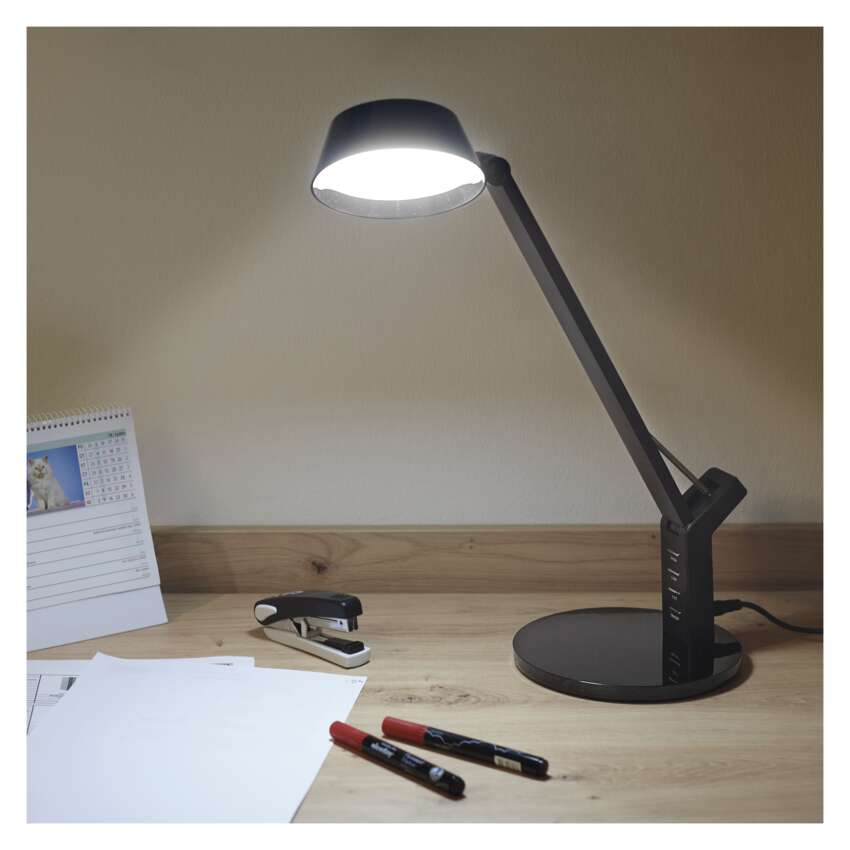 Příliš intenzivní osvětlení, nebo naopak málo světla? LED stolní lampa perfektně osvětlí každý pracovní stůl díky vysokému světelnému toku (360 lm). Optimální intenzita osvětlení je u tohoto modelu zajištěna díky možnosti stmívání.