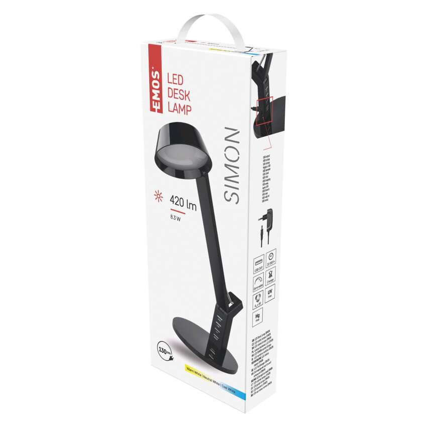 Dostatek světla při práci, studiu nebo při odpočinku v křesle s oblíbenou knihou v ruce? LED stolní lampa SIMON vás přesvědčí o tom, že i stolní osvětlení může být stylové a zároveň až překvapivě všestranné. Elegantní lampa si vás získá především možností vybrat si oblíbenou barvu světla a funkcí stmívání, za zmínku však stojí také zabudovaný USB port. V kanceláři, v pracovně, na nočním stolku nebo ve studentském pokoji najde LED stolní lampa bohaté uplatnění.