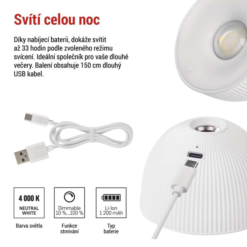 LED stolní lampa SOPHIE, nabíjecí, bílá